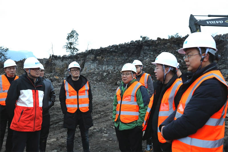 隨后,檢查組乘車前往天全魚泉鄉(xiāng)丹石礦山首采平臺。丹石公司負責人匯報,礦山存儲量可供開采十余年,目前已經(jīng)初步解決棄土矛盾,基本可以實現(xiàn)量產(chǎn)。聽完現(xiàn)場匯報,大家切實感受到礦山開采工作的艱辛,又為集團豐富的“家底”而信心倍增。