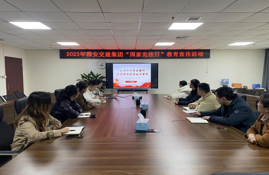 今天是我國第十個國家憲法日。為深入學(xué)習(xí)貫徹黨的二十大精神、習(xí)近平法治思想、習(xí)近平總書記關(guān)于憲法的重要論述,12月4日,雅安交建集團(tuán)組織員工開展以“大力弘揚(yáng)憲法精神,全面推進(jìn)法治國企建設(shè)”為主題的“國家憲法日”宣傳教育活動,推動“憲法宣傳周”法治教育宣傳活動落地落實(shí)。