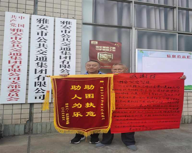 近日,雅安市公共交通集團(tuán)有限公司5路公交車(chē)駕駛員支亳川,在行駛過(guò)程中熱心幫助一老人成功尋找到家人,給文明雨城增添了暖心的一幕。4月17日,老人和家人帶著親手寫(xiě)的感謝信和錦旗,來(lái)到公交集團(tuán)當(dāng)面感謝公交集團(tuán)和5路駕駛員支師傅熱心助人的善舉。