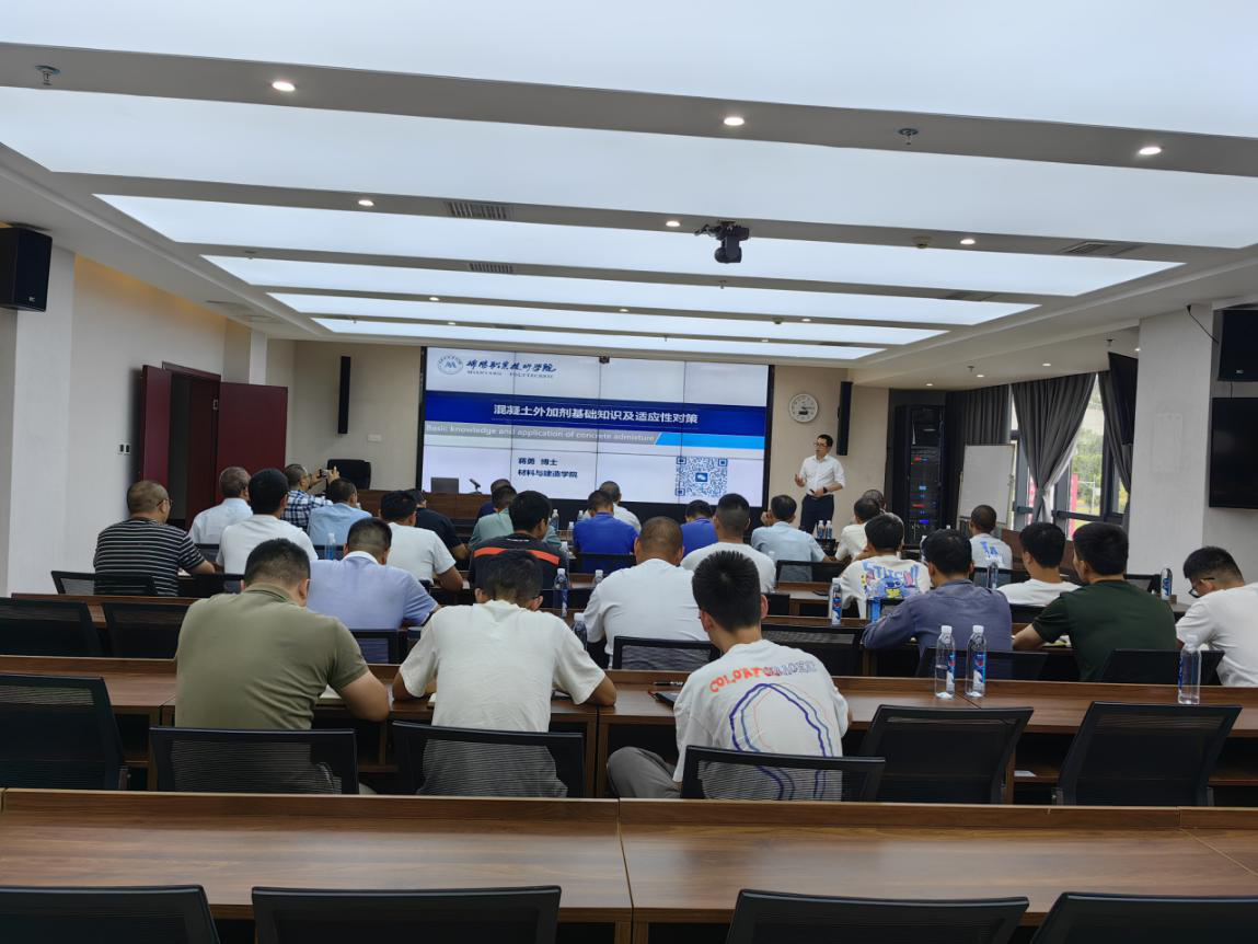 培訓邀請綿陽職業(yè)技術(shù)學院材料與建造學院院長賈陸軍、蔣勇兩位博士授課,重點圍繞配合比設(shè)計中需注意的事項展開,詳細講解配合比設(shè)計要點,分析原材料選擇及礦粉、粉煤灰摻合料摻配比例的重要性,總結(jié)交流機制砂在混凝土中的應(yīng)用技術(shù),講解混凝土外加劑基礎(chǔ)知識、分析目前外加劑在使用過程中適應(yīng)性問題和原因,通過真實案例分析混凝土質(zhì)量問題的原因及管控要點等。