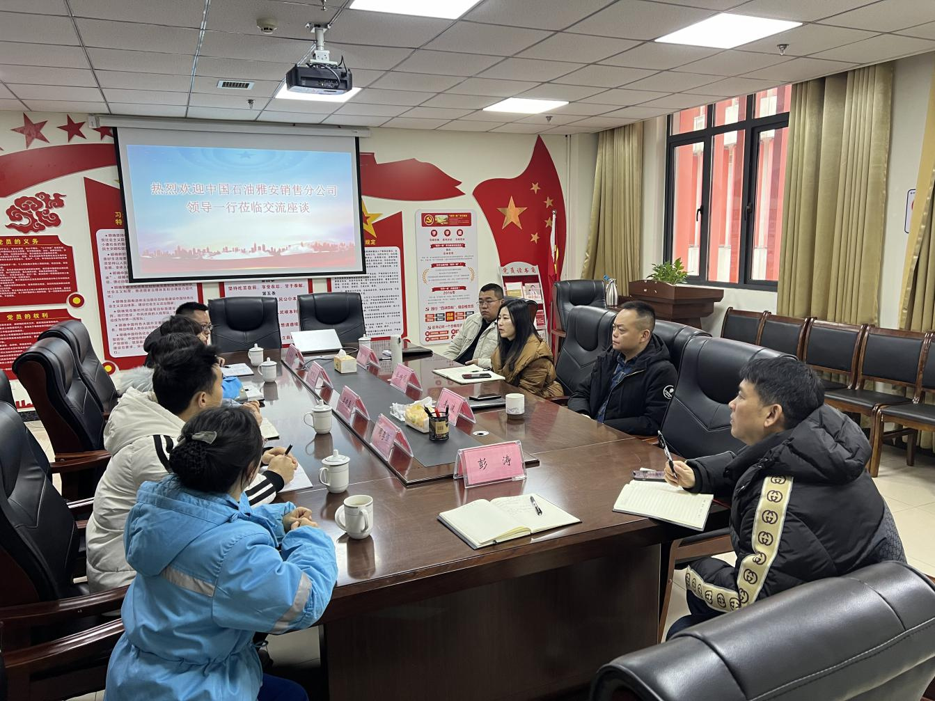 3月6日,中國石油雅安銷售分公司雨城片區(qū)副經(jīng)理劉國毅一行赴交建集團建材公司,就石油貿(mào)易業(yè)務合作事宜進行交流座談。建材公司董事長李波,總經(jīng)理李巧頔,副總經(jīng)理楊川參加座談。