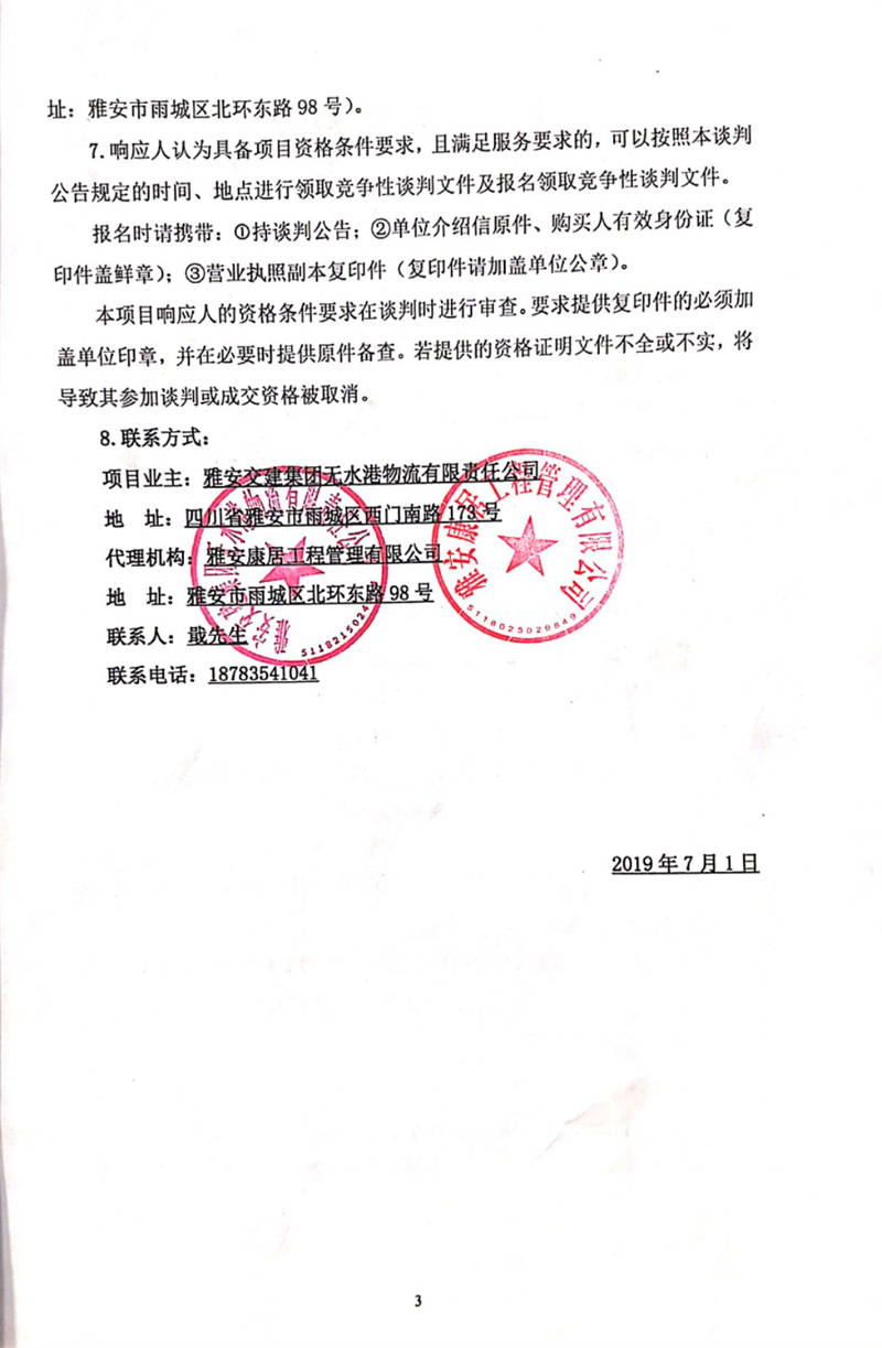 雅安交建集團(tuán)無水港物流有限責(zé)任公司雅安市無水港建設(shè)項(xiàng)目(一期)場(chǎng)平工程監(jiān)理競(jìng)爭(zhēng)性談判公告