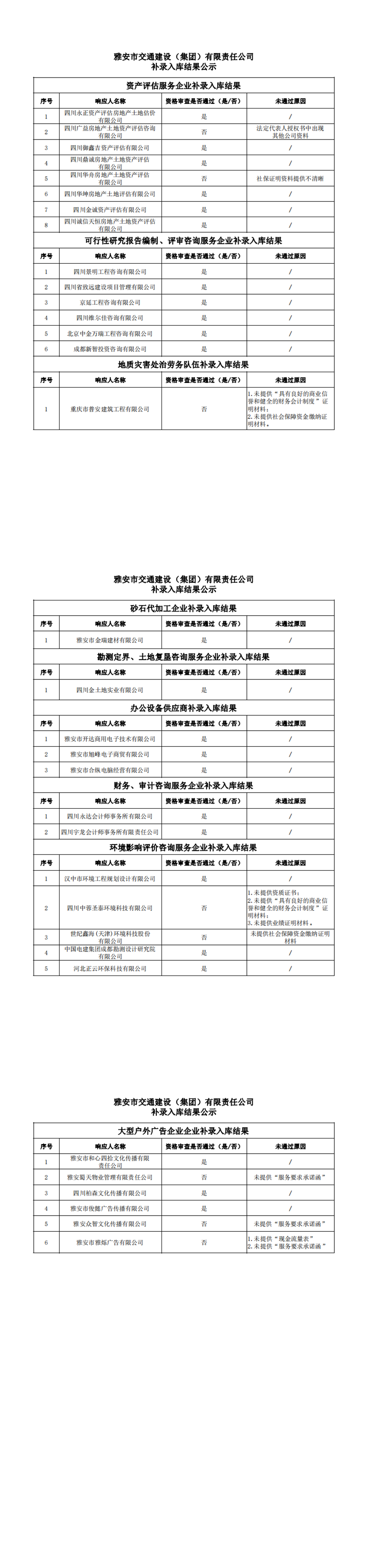 雅安市交通建設(shè)(集團)有限責任公司補錄入庫結(jié)果公示