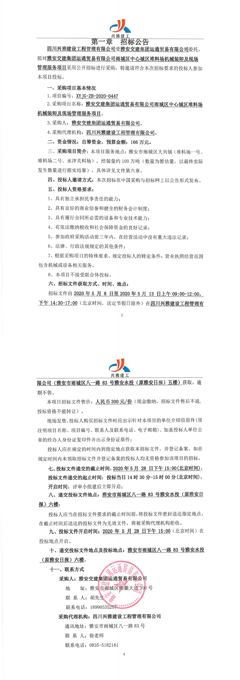 雅安交建集團(tuán)運通貿(mào)易有限公司雨城區(qū)中心城區(qū)堆料場機(jī)械裝卸及現(xiàn)場管理服務(wù)項目招標(biāo)公告