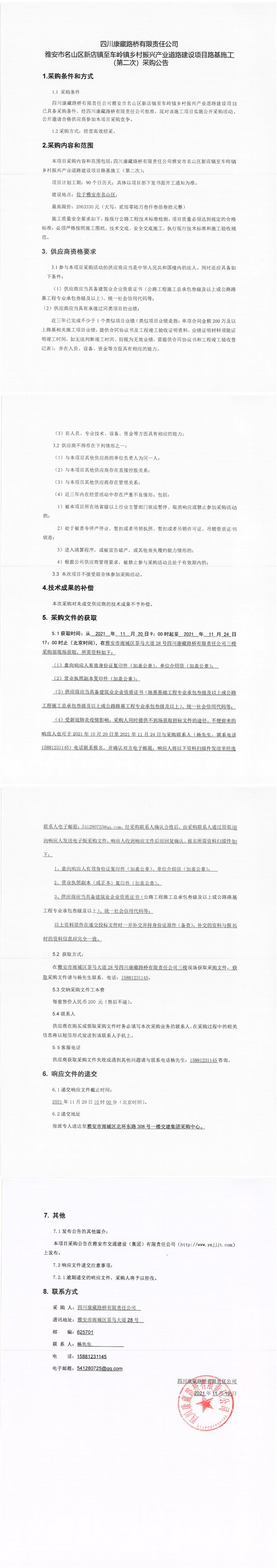 四川康藏路橋有限責(zé)任公司雅安市名山區(qū)新店鎮(zhèn)至車嶺鎮(zhèn)鄉(xiāng)村振興產(chǎn)業(yè)道路建設(shè)項目路基施工(第二次)采購公告