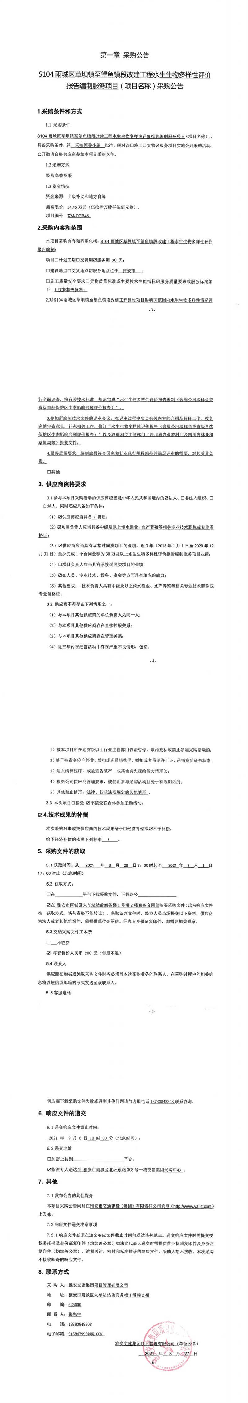雅安交建集團(tuán)項(xiàng)目管理有限公司S104雨城區(qū)草壩鎮(zhèn)至望魚(yú)鎮(zhèn)段改建工程水生生物多樣性評(píng)價(jià)報(bào)告編制服務(wù)項(xiàng)目采購(gòu)公告