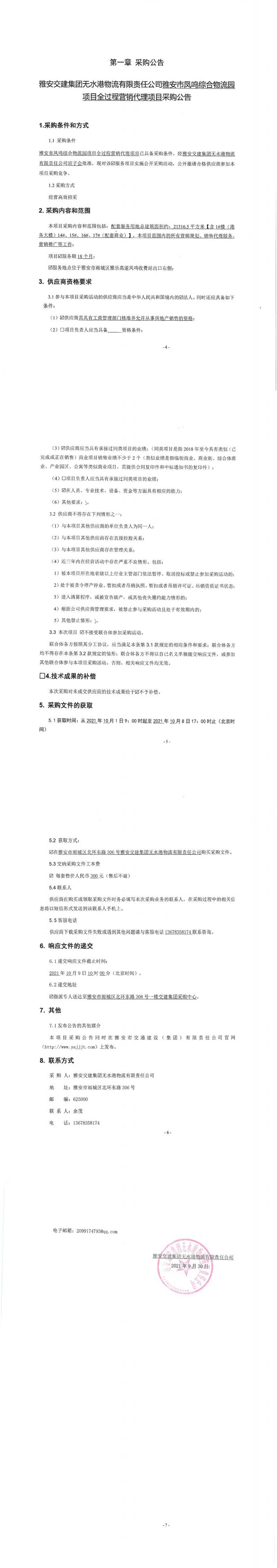 雅安交建集團(tuán)無(wú)水港物流有限責(zé)任公司雅安市鳳鳴綜合物流園項(xiàng)目全過(guò)程營(yíng)銷(xiāo)代理項(xiàng)目采購(gòu)公告