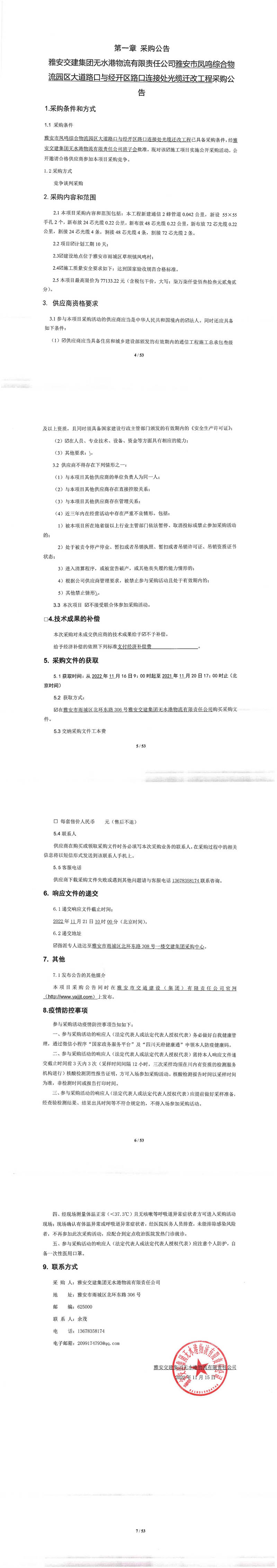 雅安交建集團(tuán)無(wú)水港物流有限責(zé)任公司雅安市鳳鳴綜合物流園區(qū)大道路口與經(jīng)開(kāi)區(qū)路口連接處光纜遷改工程采購(gòu)公告