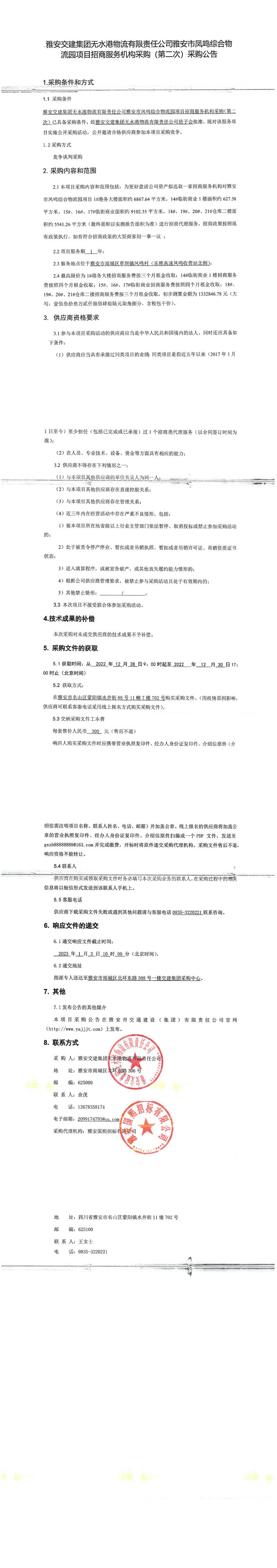 雅安交建集團(tuán)無水港物流有限責(zé)任公司雅安市鳳鳴綜合物流園項目招商服務(wù)機(jī)構(gòu)采購(第二次)采購公告