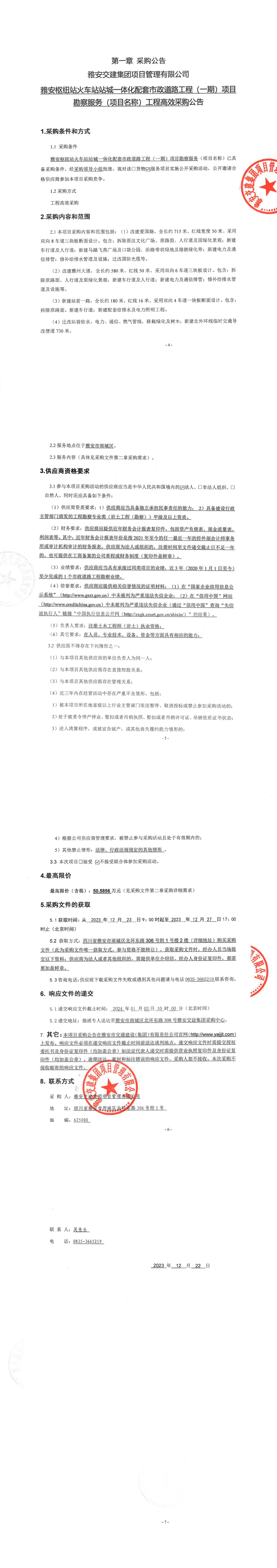 雅安交建集團項目管理有限公司雅安樞紐站火車站站城一體化配套市政道路工程(一期)項目勘察服務(wù)(項目名稱)工程高效采購公告