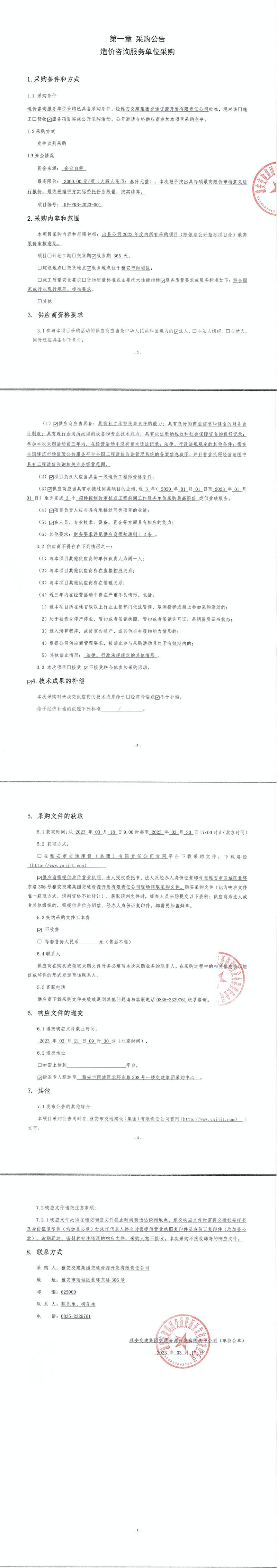 雅安交建集團(tuán)交通資源開發(fā)有限責(zé)任公司造價(jià)咨詢服務(wù)單位采購公告