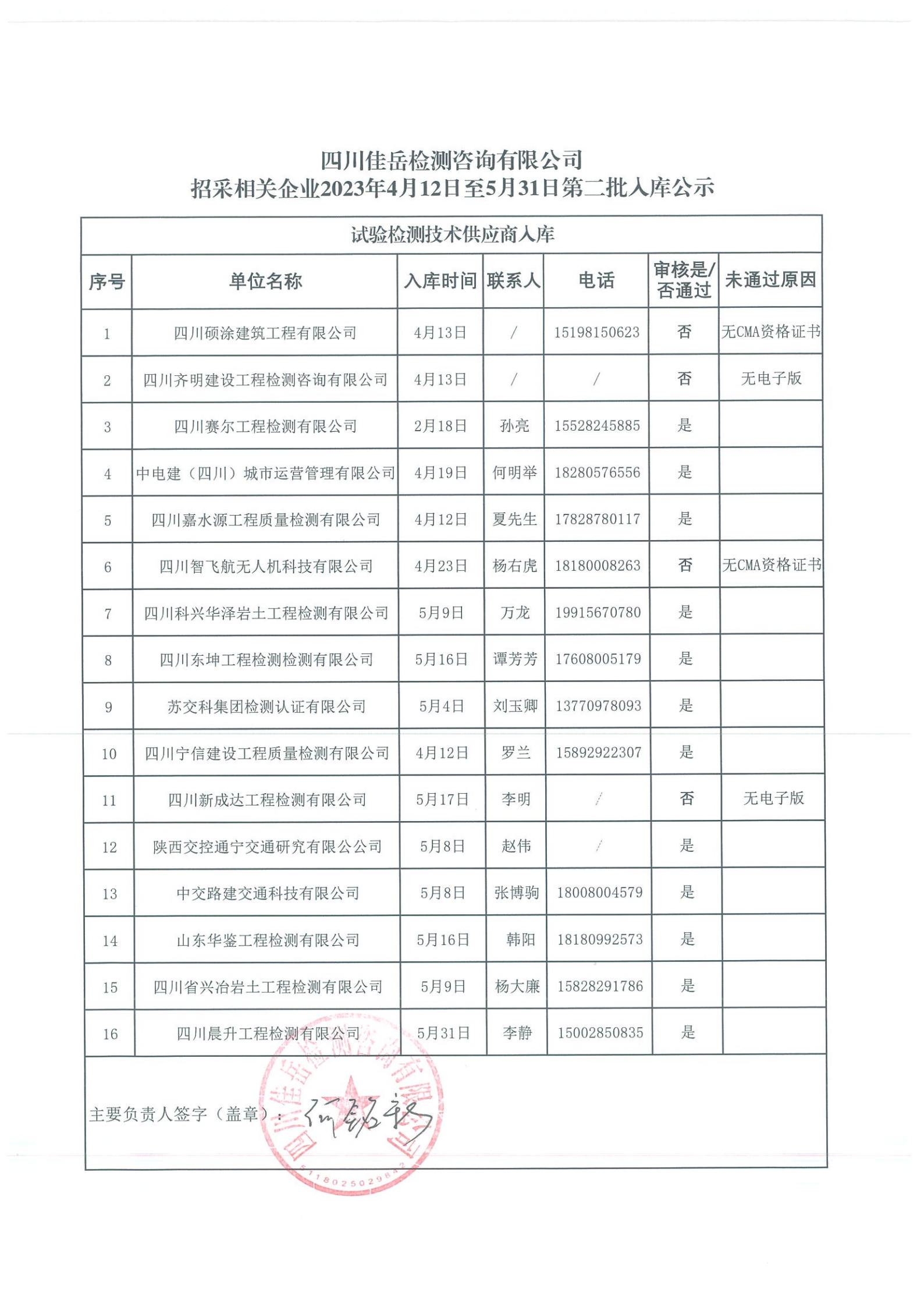 四川佳岳檢測咨詢有限公司(試驗檢測技術(shù)供應商庫)2023年4月12日至5月31日第二批入庫結(jié)果公示