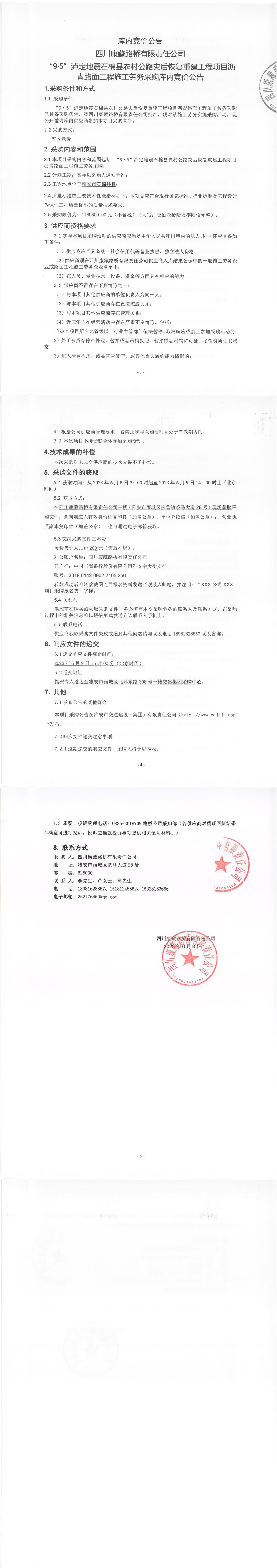 四川康藏路橋有限責任公司“9·5”瀘定地震石棉縣農(nóng)村公路災后恢復重建工程項目混凝土路面工程施工勞務(wù)采購庫內(nèi)競價公告