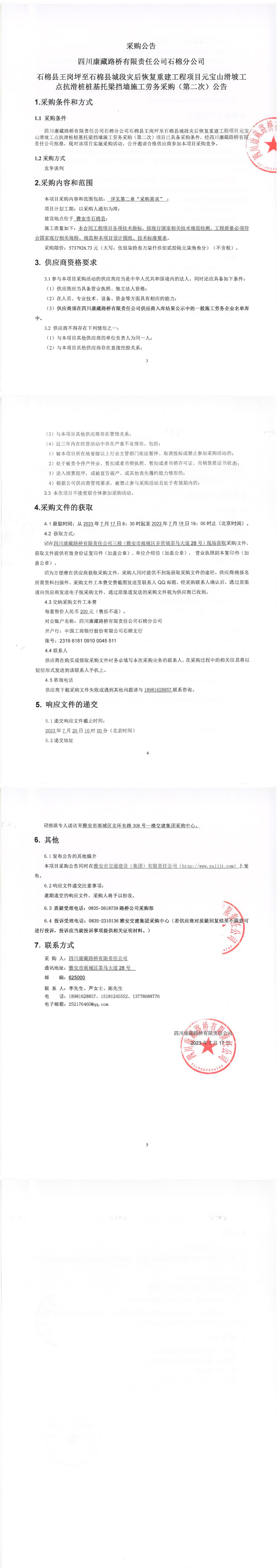 四川康藏路橋有限責任公司石棉分公司石棉縣王崗坪至石棉縣城段災后恢復重建工程項目元寶山滑坡工點抗滑樁樁基托梁擋墻施工勞務(wù)采購(第二次)公告