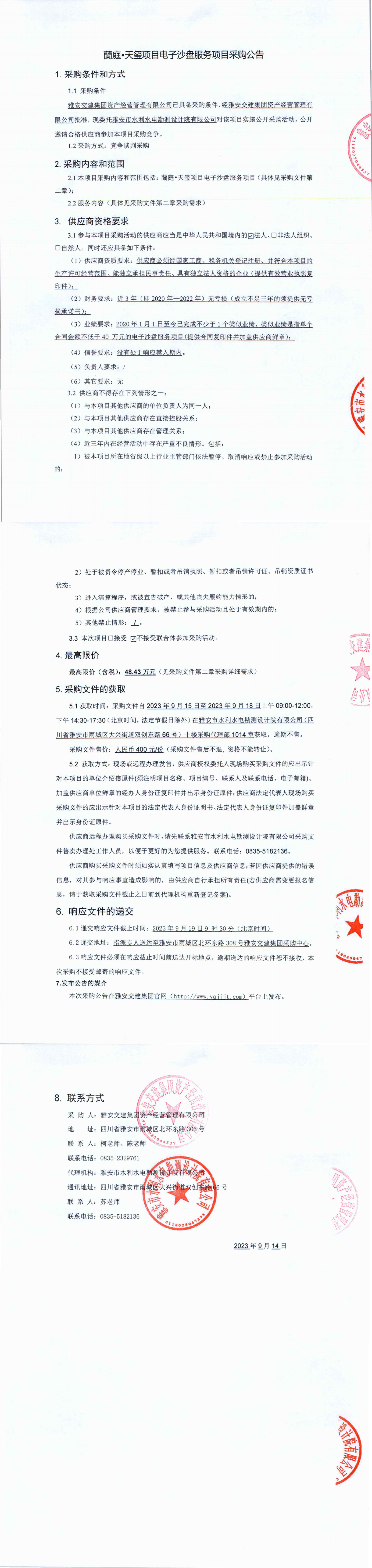 雅安交建集團(tuán)資產(chǎn)經(jīng)營管理有限公司交建蘭庭·天璽項(xiàng)目電子沙盤服務(wù)項(xiàng)目競爭談判公告